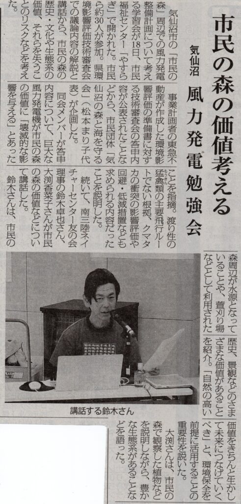 4月18日に開催した学習会「市民の森の秘めたる価値と可能性~環境アセスメント準備書を読み解く~」が、複数の新聞で取材・掲載されました。